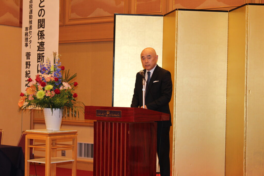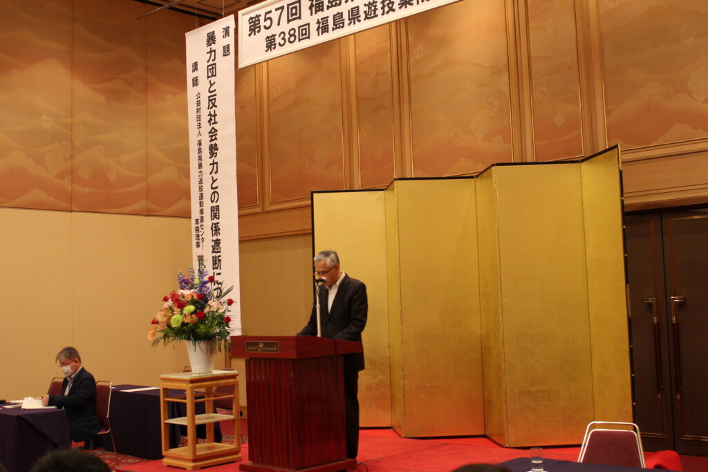 講師として、県警察本部生活安全企画課の小湊正仁課長補佐から「適正営業について」、公益財団法人福島県暴力追放運動推進センターの菅野紀之専務理事から「暴力団と反社会勢力との関係遮断について」それぞれ講演を頂きました。