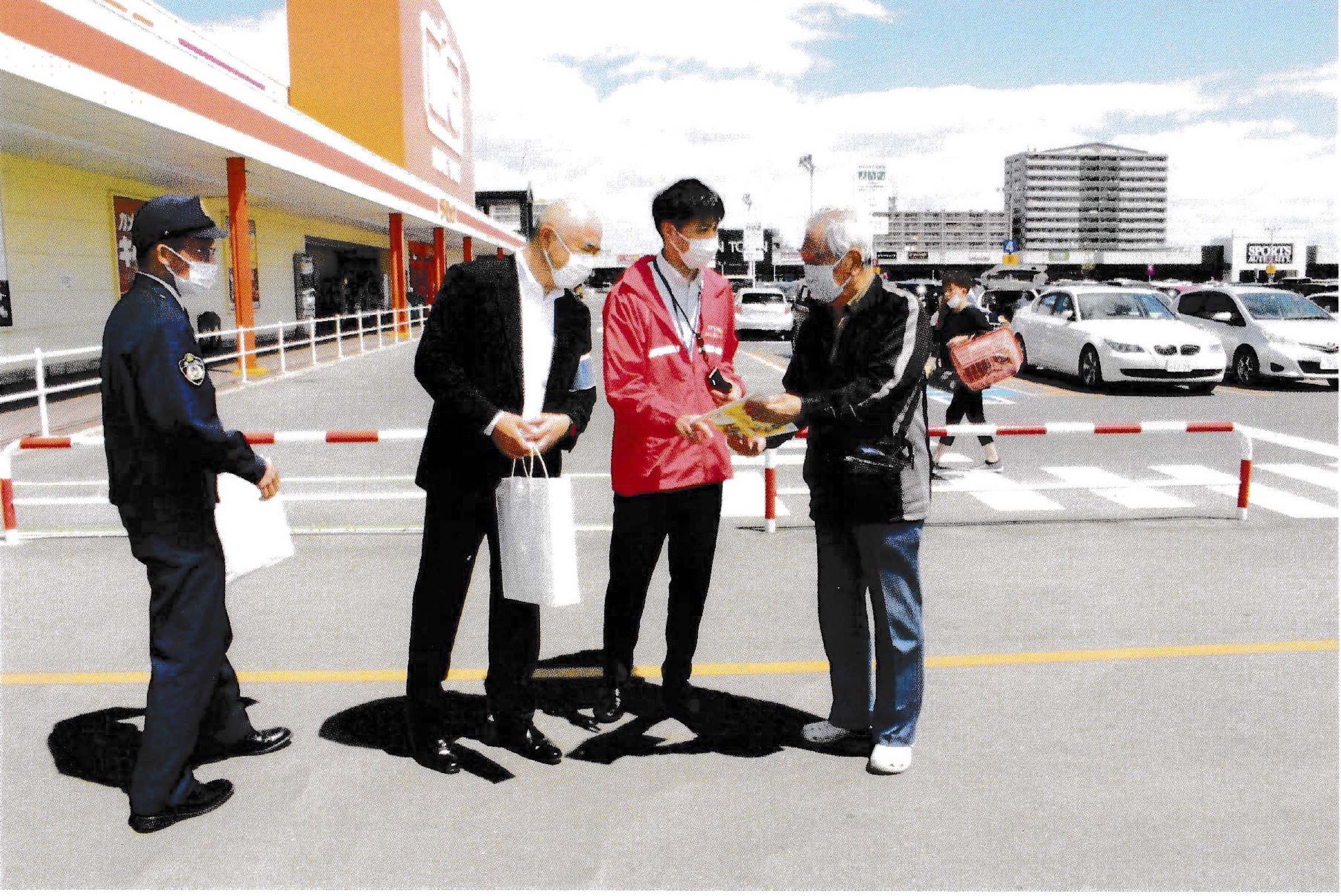 犯罪被害を防止するため、商業施設の利用者に注意を呼びかけるチラシなどを配布しました。