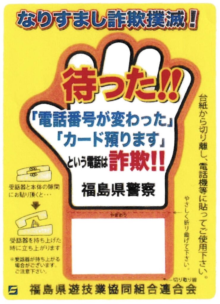 県遊技業協同組合連合会は、社会貢献活動の一環で「なりすまし詐欺」防止を訴える街頭活動を行いました。