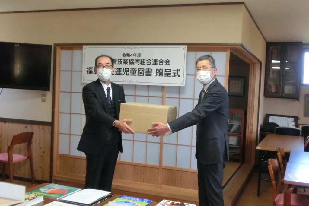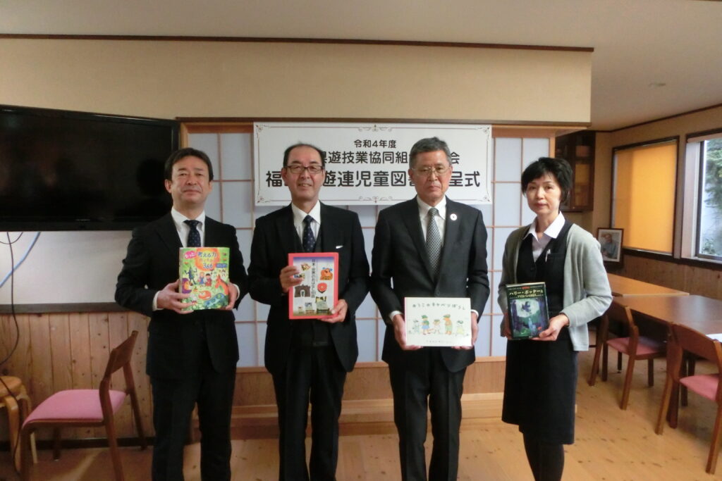 11月4日福島市内の児童養護施設「青葉学園」に児童図書約60冊を贈呈しました。このほか県内7つの児童養護施設に対しても絵本や図鑑などの児童図書を贈呈しています。福島県遊連は、未来を担う子供たちに「読書を通じて夢と想像力を育んでほしい」との願いを込めて、2018年からこの活動を継続しており、今回が6回目、累計の贈呈数は約1,500冊となりました。